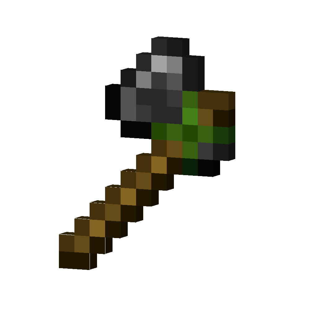 A flint axe is an early game tool used to hasten the breaking of wood-based or other tough organic blocks, strip or scrape certain blocks, or as a melee weapon that also disables shields it hits.1